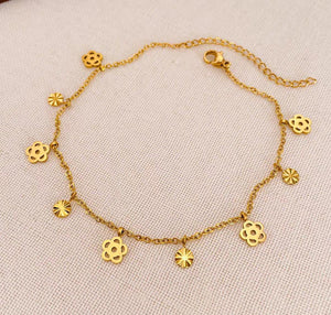 Add a subtle shimmer to your style with this delicate golden charm anklet. Adorned with tiny moon and floral charms, it’s perfect for everyday wear. A must-have for those who love elegant, understated jewelry.