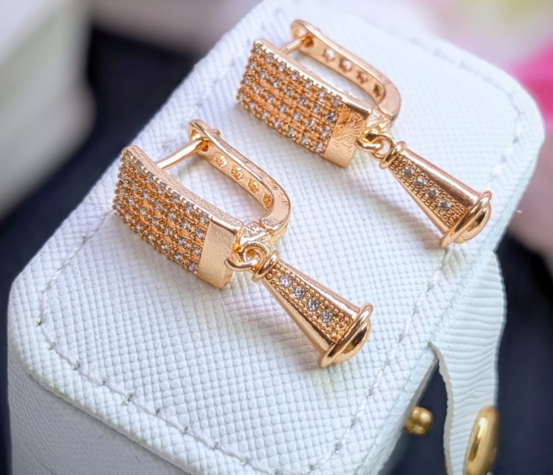 Elevate your style with these stunning drop earrings, exquisitely adorned with shimmering cubic zirconia stones. Featuring a rectangular top pave-set with multiple rows of sparkling CZs, these earrings gracefully descend into a delicate, textured drop. The secure lever-back closure ensures comfortable wear all day or night. Perfect for adding a touch of timeless elegance to any outfit, from everyday chic to special occasion glamour.