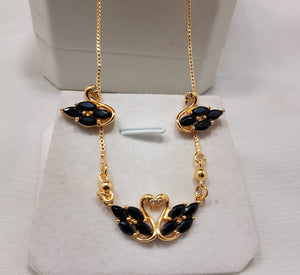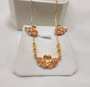 Adorn yourself with this exquisite golden chain jewelry set, featuring a charming swan design. This beautiful collection includes a delicate necklace and matching earrings, each meticulously crafted with a graceful swan motif. The swans are embellished with sparkling, marquise-cut gems, available in three stunning colors to suit your style:
