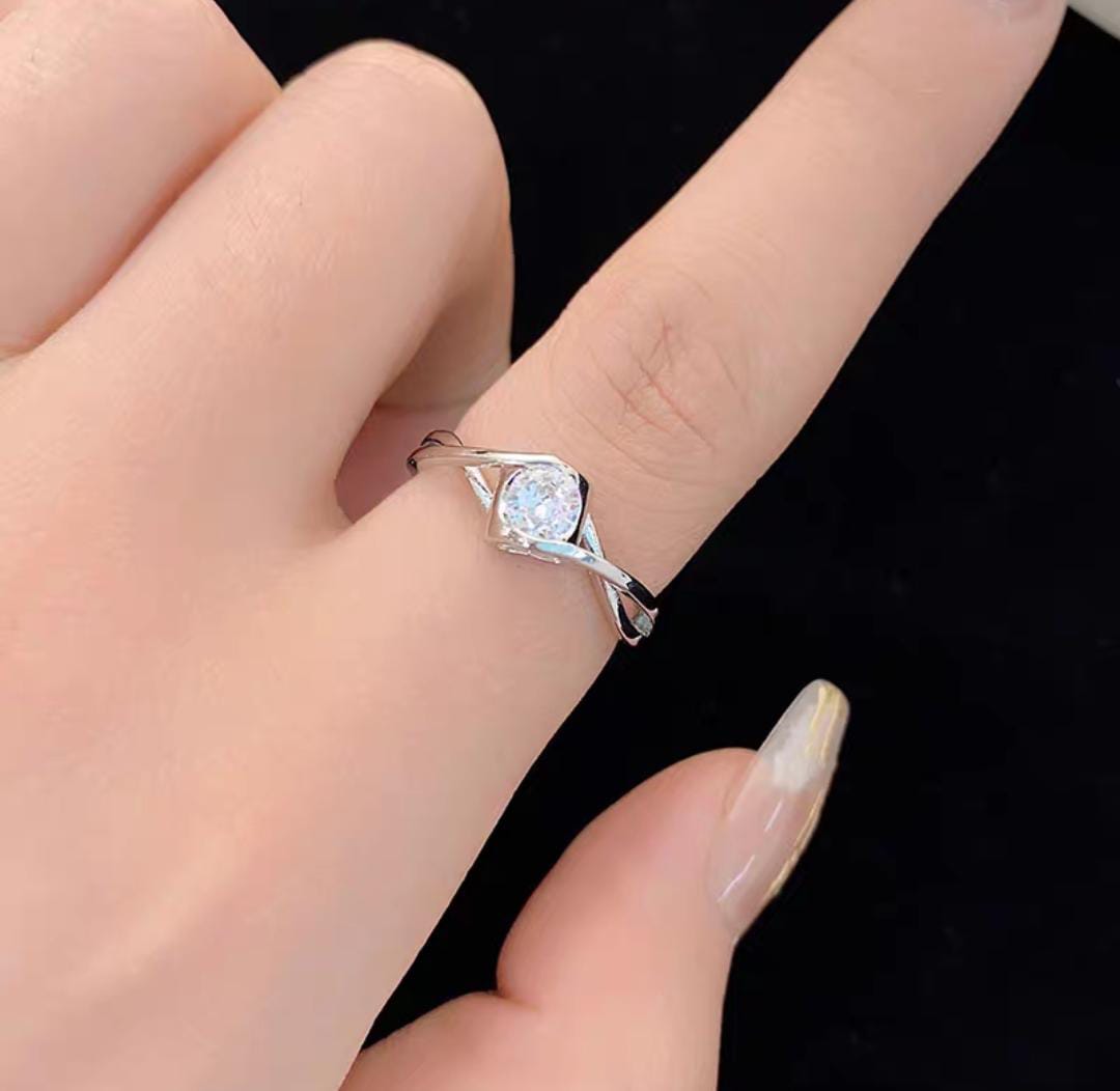 Elegant Silver-Tone Twist Ring with Shimmering Center Stone – Stylish & Timeless Gift