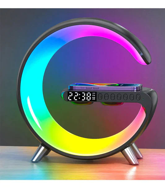 G Shape Atmosphere 4 in 1 Multifunctinol Bluetooth Speaker Desk Table Lamp with Wireless Charger LED Light | FM Radio | 7 Light Color Modes | Bluetooth Music |15W Fast Charging and AUX