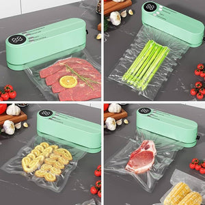 Whether you're looking to store bulk purchases, marinate meats, or prepare meals for later, our vacuum sealer offers multiple modes to suit your needs. Choose between the efficient Vacuum Sealing mode for complete air removal, the convenient Single Sealing mode for simple bag closure, or utilize the Point Pumping mode for manual control over the vacuum level – perfect for delicate items. Its sleek, user-friendly design and powerful performance make it an indispensable tool for any modern kitchen aiming to reduce food waste and optimize storage.