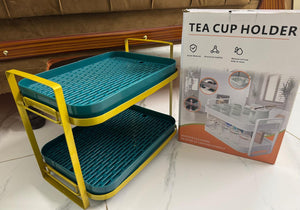 Premium 2-Tier Tea Cup Holder with Drainage Trays - Space-Saving Design