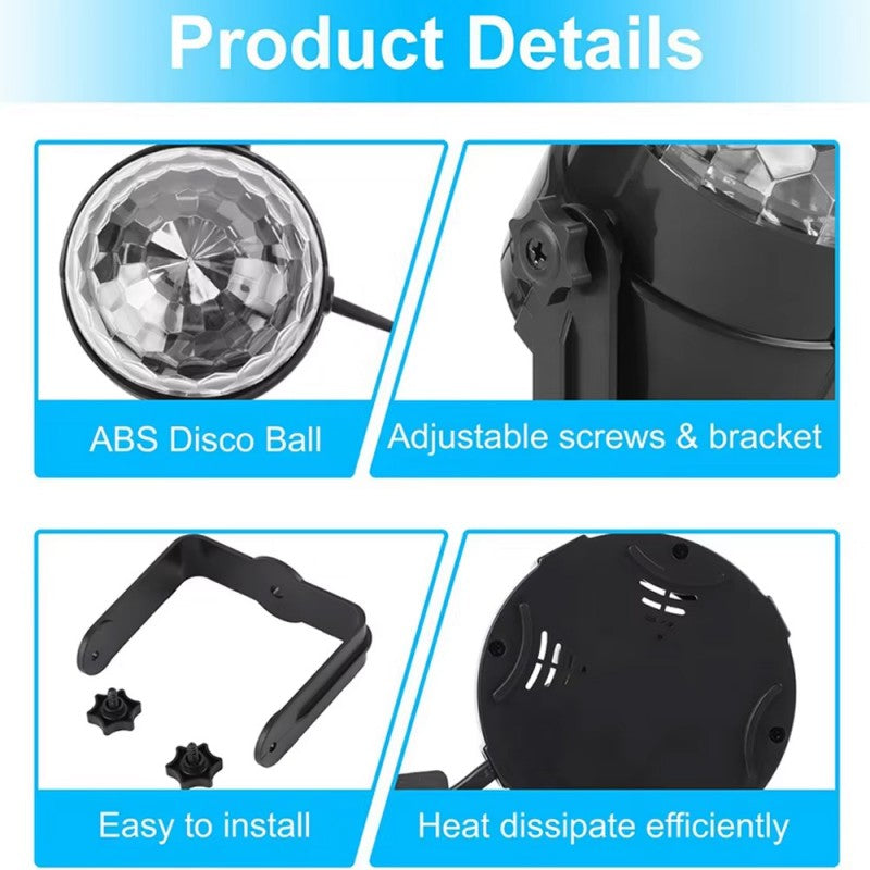 Just plug it in and play. With flexible tripod, the stage light can be placed directly on the table or desk, on the car, or it can be fixed on the wall and roof.