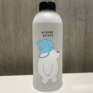 "We Bare Bear" Frosted Glass Water Bottle With Straw